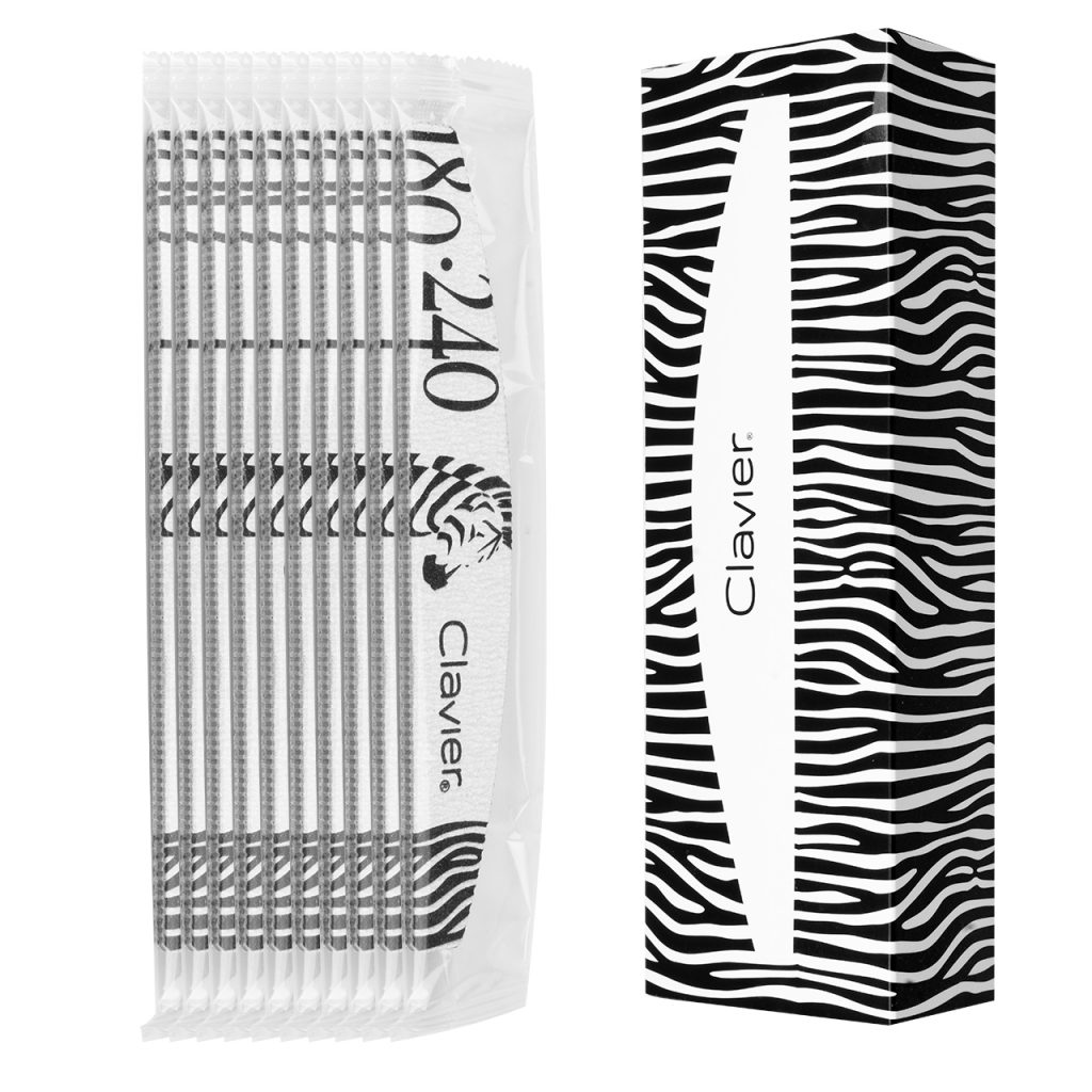 Bezpieczny pakiet Pilnik Zebra Clavier, zawiera 10 sztuk efektownych pilników, który każdy jest pojedynczo opakownay w folie i zamknięte w stylowym pudełeczku.