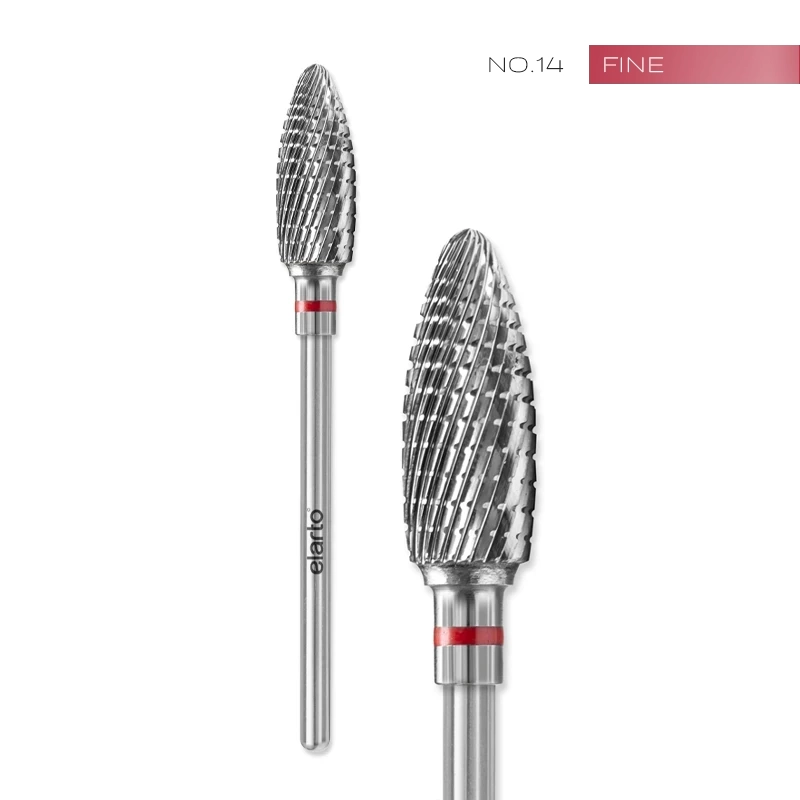 Frez Elarto No14 wrzeciono to narzędzie doskonałej jakości i długiej żywotności. Umożliwia szybką i bezpieczną pracę podczas zabiegów manicure i pedicure. Jest jednym z łagodniejszych frezów wykonanych z węglików spiekanych, dlatego idealnie sprawdza się w pracy przy normalnych lub lekko zgrubiałych paznokciach naturalnych. Jest również niezastąpiony podczas usuwania masy, modelowania i obróbki przedłużonych paznokci. Podczas pracy frezem No15 nie musisz obawiać się o nieprzyjemne uczucie pieczenia, ponieważ jego powierzchnia została wykonana techniką spiralnego ułożenia ząbków, dzięki czemu frez i płytka paznokcia nie nagrzewają się, a ciepło wytwarzane podczas pracy jest szybko odprowadzane.