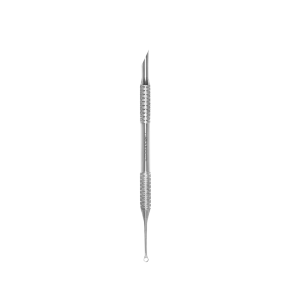 Korzystanie ze ściętej części roboczej: Użyj ściętej części roboczej ostrza, aby unieść i odepchnąć naskórek. Delikatnie i ostrożnie chodź wzdłuż naskórka, odsuwając go od paznokcia.